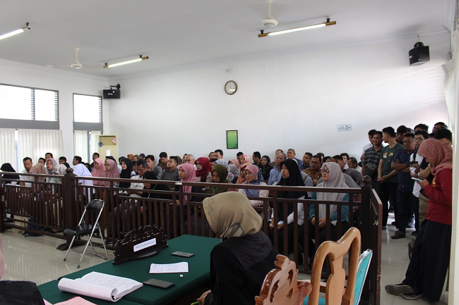 Supporters of Saiful Mahdi crowded the court room during his trial in 2021, in which he was charged with defamation under the draconian ITE law / LBH Banda Aceh