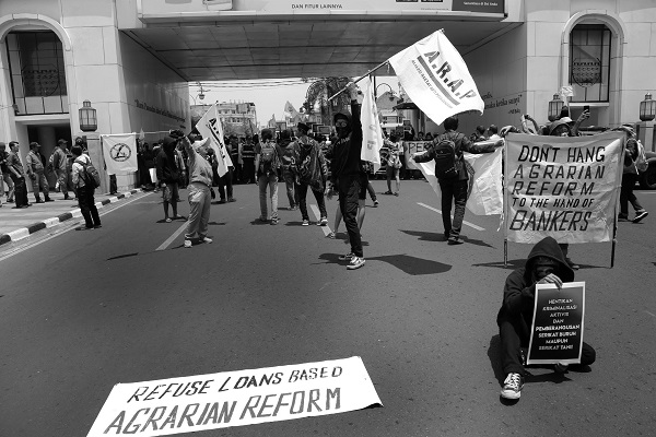 On 24 September 2018, hundreds of people demonstrated in front of Gedung Merdeka in Asia-Afrika Street, Bandung, West Java, where the Global Land Forum (GLF) 2018 was happening. This was the eighth gathering of the forum since the inaugural conference in Rome in 2003. The opening of the three-day event coincided with Indonesia’s National Peasants’ Day.